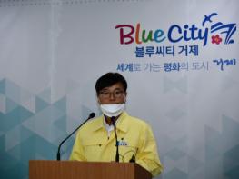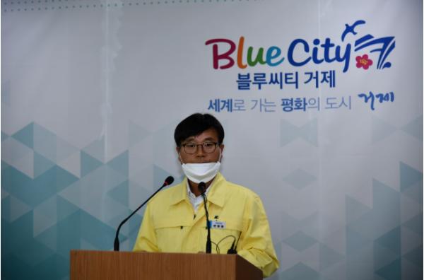 변광용 거제시장은 23일 오전 시청 브리핑룸에서 거제시 첫 코로나19 확진환자 발생에 관한 경위와 조치사항에 대해 브리핑했다.