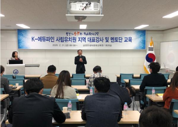 전라남도교육청은 지난 20~21일 이틀 간 전라남도교육연구정보원 및 순천만생태문화교육원에서 K-에듀파인 사립유치원 사용자 지원을 위한 지역 대표강사 및 멘토단 112명을 대상으로 권역별 사용자 교육을 실시했다.