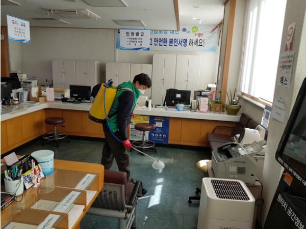 대구·경북 지역 코로나19 확산에 따라, 휴일임에도 불구하고 공무원과 새마을지도자들의 자발적인 참여로 관내 경로당 5개소, 공동주택 4개소, 어린이집, 지역아동센터, 목욕탕, 금융기관 등 지역주민이 밀집하는 곳에 집중 방역을 실시하였다.