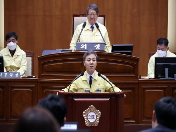 김승수 전주시장은 24일 제367회 전주시의회 임시회 개회식에서 코로나19 지역사회 확산을 막기 위해 “우리 시민들의 역량을 총 집결해서 전주시 전체에 대한 소독기간으로 정하고 다음 주부터는 정기적으로 소독하는 방안을 강구할 것”이라며 범시민운동 형태의 ‘시민 일제 소독의 날’을 운영키로 했다.