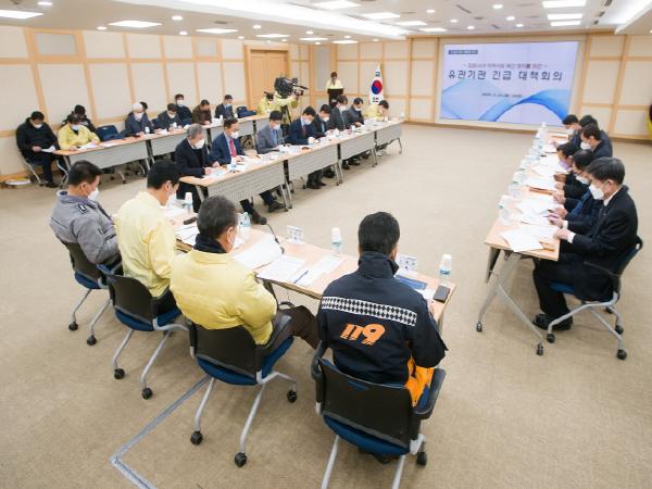 이번 회의는 2.22.(토) 구미시에 최초 확진자가 발생하였고, 이후에도 추가 확진자가 발생하면서 지역 확산이 예상됨에 따라 긴급하게 개최하게 되었다. 감염증 지역 확산 방지를 위해서는 구미시를 비롯한 지역의 모든 기관이 합심하여 총력 대응하여야 한다는 판단아래 관계기관 모두 적극 협조할 뜻을 밝혔다.