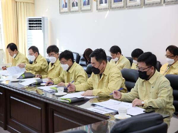 이번 대책 회의는 장종태 청장 및 간부 공무원 40여 명이 참여한 가운데, 코로나19 위기 경보단계를 경계에서 심각 단계로 격상(2.23.보건복지부)과 대전시 확진자 발생에 따른 부서별 추진할 세부 내용에 대한 논의가 주요 골자였다.