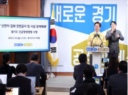 이 지사는 24일 오전 경기도청에서 기자회견을 열고 코로나19 확산 방지를 위한 비상조치에 대해 설명했다.
