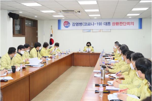 대구시교육청(교육감 강은희)은 2월 24일(월) 오전 8시 시교육청 상황실에서 교육감 주재 ‘코로나19 대응 비상대책회의’를 개최해, 정부의 ‘감염병 위기경보 심각 단계 격상’에 따른 후속대책를 논의했다.