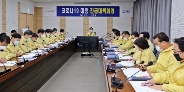 고흥군(군수 송귀근)은 24일 군청 흥양홀에서 신종 코로나바이러스 감염증(이하 코로나19)의 지역사회 원천차단을 위해서 긴급 대책회의를 가졌다.