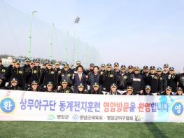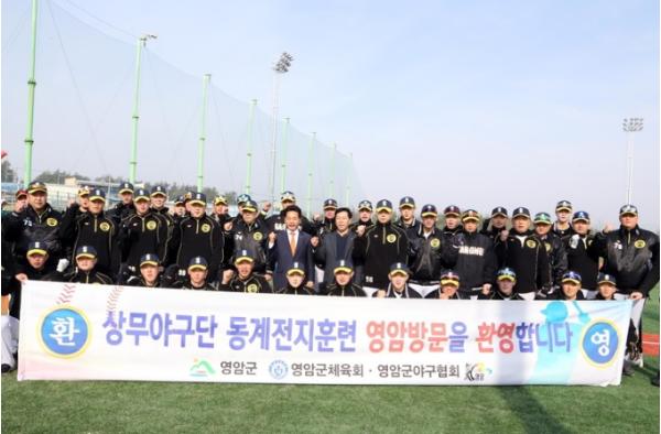 따뜻한 기후와 우수한 스포츠인프라가 잘 갖춰진 영암군이 최근 동계 전지훈련지로 각광받고 있는 가운데, 상무야구단의 동계 전지훈련이 중·후반기로 접어들었으며 이에 전동평 영암군수는 지난 21일 영암종합스포츠타운 야구장을 방문하여 ‘2020 시즌 퓨처스리그’ 우승을 위해 동계 전지훈련으로 구슬땀을 흘리고 있는 선수들을 격려하였다.