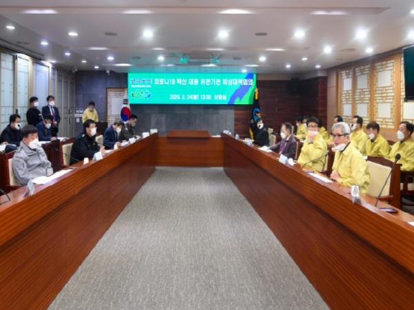 곽상욱 오산시장이 코로나19 대응 위기경보가 ‘심각’으로 격상됨에 따라 24일 시청 상황실에서 관내 유관기관 협력회의를 주재하고 코로나19 확산 대응 방안을 모색했다.