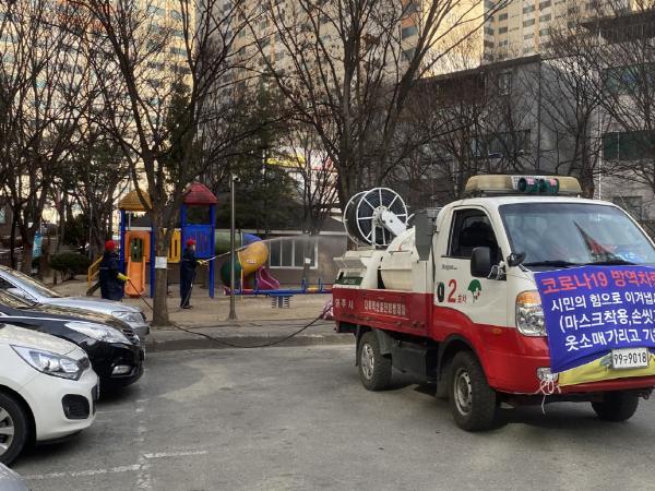 방역 소독은 확진자 이동 동선과 시설을 우선 소독 하고, 다중이용 구역은 우선 순위를 지정해 도로변, 골목, 아파트 주변 등을 돌며 소독약 살포 주요 건물은 마당, 주차장 등 외부도 방역을 시행했다