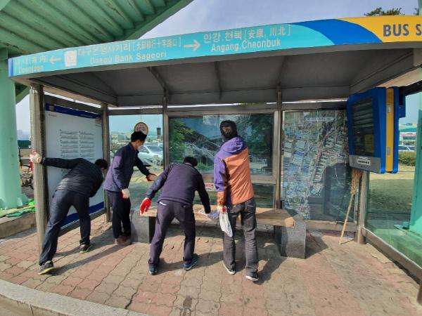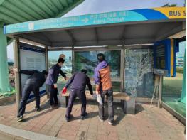 코로나19 감염이 확산됨에 따라 주민과 면역력이 약한 노인들이 많이 이용하는 버스정류장의 손잡이·의자 등 사람들 손이 자주 닿는 곳을 집중 소독했다.
