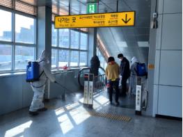 이날 지역자율방재단 20명은 많은 시민들이 오가는 전철역, 버스정류장, 공중화장실 등에 소독제 살포 등 방역활동을 진행했다.