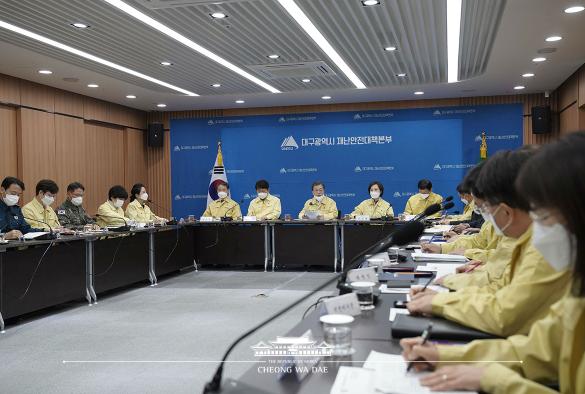 이어 문 대통령은 “그런 차원에서 오늘 오후부터 정세균 국무총리가 대구에 상주하실 것”이라며 “중앙재난안전대책본부 차원의 상주이기도 하지만 총리가 상주하면 지역의 애로사항들을 보다 빠르게 파악하게 되고, 정부가 이런저런 조치를 취해도 지역현장에서 체감하는 데까지는 시간이 걸리는데 신속하게 확인하실 수 있을 것”이라고 덧붙였다.