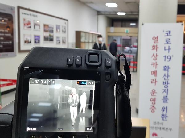 구는 완산구청사 1층 로비에 열화상카메라를 배치해 방문자의 체온을 감지키로 했다. 이를 위해 구는 부서별 전담인원을 선정하고 철저하게 감시에 나설 예정이다.