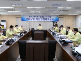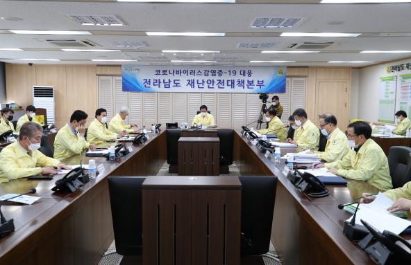 코로나19가 심각단계로 격상된 가운데 전라남도의회(의장 이용재) 의장단은 26일 도민들의 불안감을 해소하고자 전남도 방역대책본부를 방문해 대응상황을 점검하고 관계공무원들의 노고에 대해 격려했다.