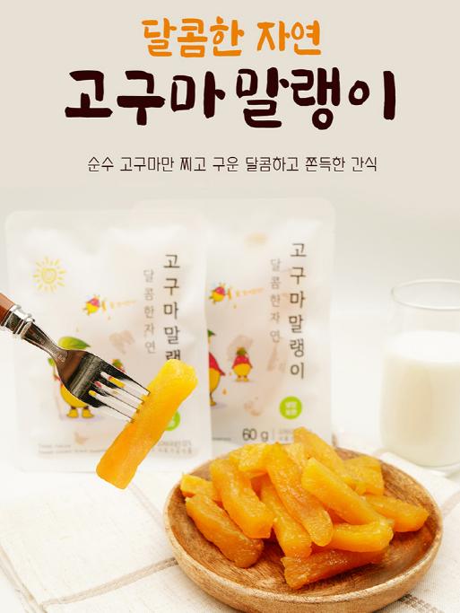 수작업이기 때문에 생산량도 적고, 크기도 모양도 일정하지 않지만 무색소, 무방부제, 무설탕 제품으로, 달콤하고 부드러워 어린이들까지 걱정없이 먹을 수 있는 건강 간식으로 손색이 없다. 특히 100% 해남산 고구마로 만들어 원재료가 가진 전국 최고 고구마의 명성을 말랭이를 통해 맛볼 수 있는 기회가 되고 있다.