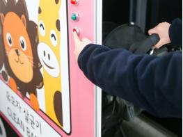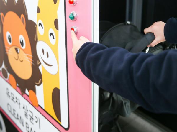 의왕시 내손2동 아동도서관에 설치되어 있는 유모차 살균기를 이용해 시민이 유아용 유모차를 살균하고 있다.