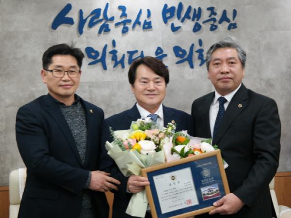 경기도의회 경제노동위원회 송영만 의원이 26일(수) 경기도의회 의장 접견실에서 「2019년 경기도의회 의원발의 우수조례」 의장 표창을 수상했다.