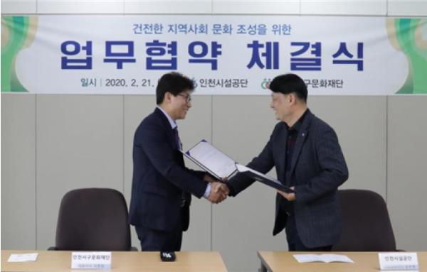 인천서구문화재단은 진난 21일 아시아드경기장 회의실에서 인천시설공단 아시아드경기장사업단과 지역문화발전에 상호협력하는 업무협약(MOU)을 체결했다.