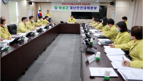 26일 김철우 보성군수가 코로나19 신속 대응을 위하여 재난안전 대책본부 실무회의를 개최했다.