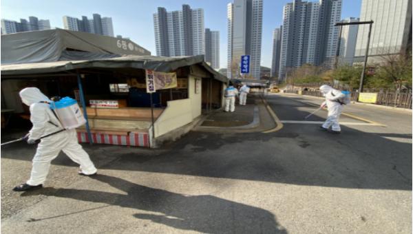 시는 코로나19 확산 차단을 위해 사태가 종료될 때까지 소독약품의 효과가 지속되는 7일 간격으로 매주 수~금·월요일에 공무원 비상근무조를 활용해 지역사회 방역에 총력을 기울일 예정이다.
