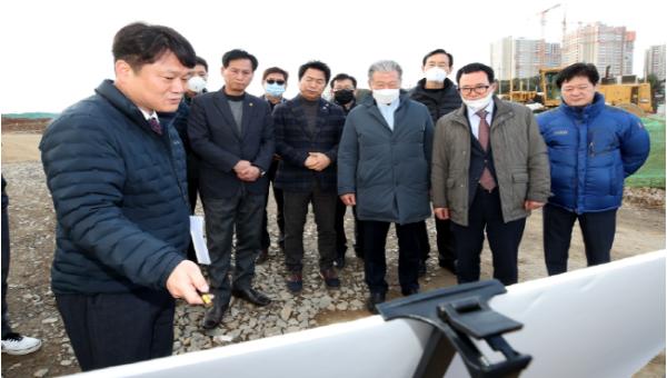 제8대 인천광역시의회(의장 이용범)는 검단신도시 개발사업 추진상 황을 점검하고 사업지구내 시민불편 도로민원 현장을 직접 살펴보 기 위해 2월 26일 검단신도시 현장방문을 실시하였다.