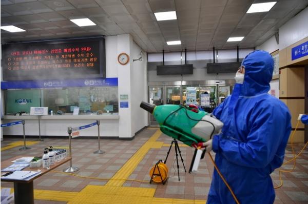 대구?경북지역의 코로나-19 확진자가 증가함에 따라 정부에서는 감염증 위기경보를 심각단계로 격상하였으며, 청도군에서는 코로나-19의 확산방지를 위해 청도역에 직원을 배치하여 방문객에 대해 일일이 체온을 체크하며, 손소독제를 사용하도록 조치하고 있다.