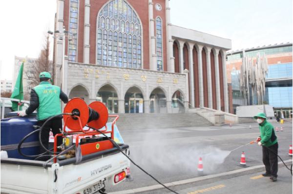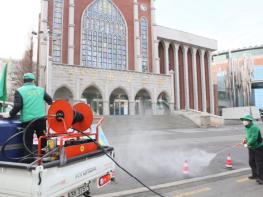 구는 25일(화) 코로나19 추가 확진자가 발생한 직후, 보건소 방역팀을 중심으로 주민과 직원들이 함께 확진자 자택과 확진자가 다녀간 식당, 병원 등을 포함해 명성교회 일대와 명성시장, 명일동 주요도로?이면도로를 대대적으로 방역했다. 동시에 주민 모두의 안전을 위해 주민들이 자주 이용하는 시설에 대해 전방위적으로 방역을 더욱 강화할 계획이다.