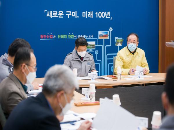 구미시(시장 장세용)와 구미경찰서(서장 이갑수)는 2.27(목) 오전 10:30 구미시청 3층 중회의실에서 양 기관 주요 관계자들이 참석한 가운데 코로나19의 지역사회 확산 방지를 위한 긴급 대책회의를 가졌다.