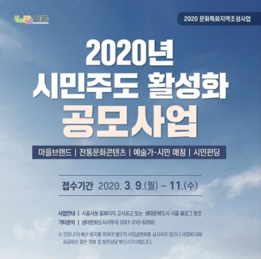 시흥시(시장 임병택)가 생태문화도시 조성의 일환으로 ‘2020년 시민주도 활성화 공모사업’을 시작한다고 밝혔다.