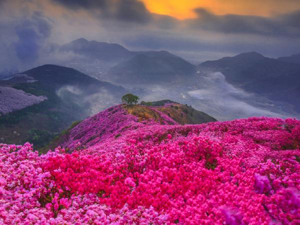 영취산 진달래는 전국 3대 진달래 군락지 중 하나로 행사기간 동안 20여만 명이 찾아오는 진달래 명소이다.
