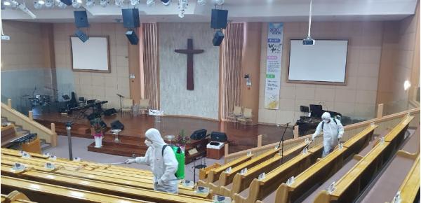 논현2동(동장 홍순삼)은 지난 26일, 논현2동 자율방역단 회원과 행정복지센터 직원들이 함께 지역 내 종교시설 및 아동복지시설, 경로당 등에 대한 자체방역활동을 실시했다.
