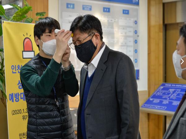 인천시교육청, 코로나 19 예방을 위한 본청 직원 포함 출입자 발열 체크 시작
