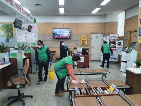 신북면 새마을남녀지도자회(회장 송용규, 최계남)는 지난 26일 코로나19 예방을 위한 다중이용시설 소독을 실시하며 감염증 예방을 위한 봉사활동에 총력을 기울이고 있다.