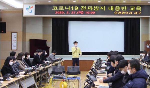 서구는 이날 오전 신천지 교인 전수조사를 담당할 ‘코로나19 전파방지 대응반(이하 대응반)’ 50명을 대상으로 교육을 진행하고 교인 전원에 대한 조사를 시작했다.