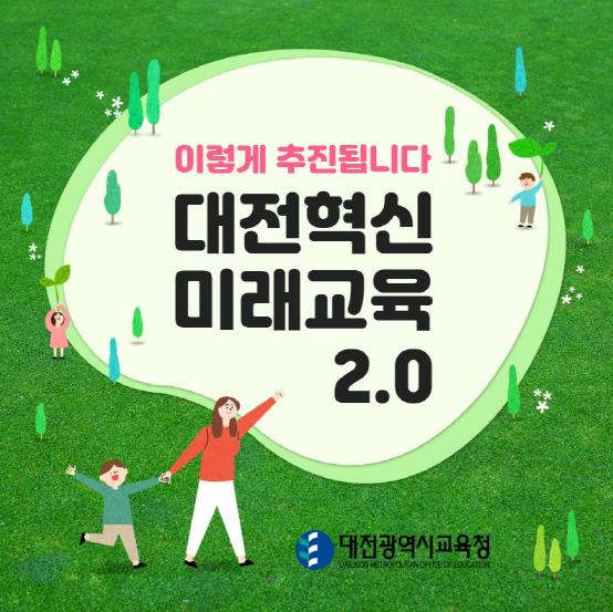 ‘대전혁신미래교육 2.0’은 대전의 혁신교육 정책이 5년차를 맞이하면서 그동안 혁신학교를 중심으로 추진되었던 정책을 2020년을 기점으로 기존의 혁신학교를 모델로 하되 혁신학교의 운영 형태를 다양화하고 특화 모델을 발굴하여 대전의 모든 학교가 함께 공유하고 실천할 수 있도록 혁신교육을 일반화하는데 초점을 두고 있다.