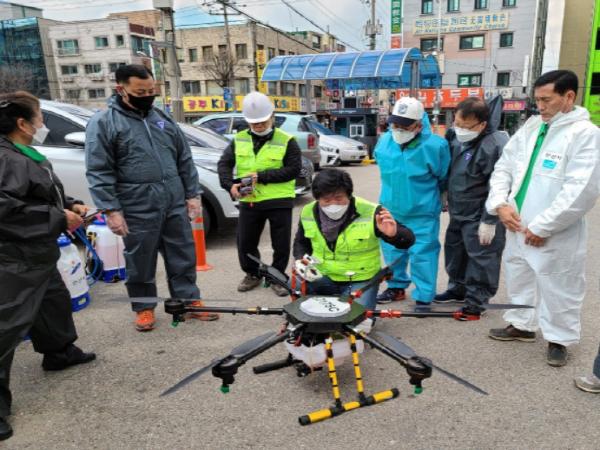 방역에 투입된 드론은 한 번 공중에 뜨면 10리터 분량의 소독제를 15~20분 내로 1만㎡(약 3천평)에 분사할 수 있다. 이 때문에 많은 인력이 필요한 넓은 면적에서 소독하기에 적합하다.