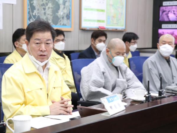 광명시청 재난상황실에서 천주교, 불교, 개신교 등 3대 종교 7명의 종교 지도자들과 가진 간담회에 참석한 박 시장은 “지난 26일 광명시에 첫 확진자가 나온 상황에서 시민들의 불안을 해소하고 장기적인 코로나19 확산 방지를 위해 종교계와의 긴밀한 협조가 더욱 절실해졌다”며 “법회나 예배를 최소화하는 하는 등 종교계의 적극적인 예방활동을 당부드린다”고 말했다.