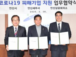 이날 시청 상황실에서 열린 협약식에는 윤화섭 안산시장과 이세협 안산세무서장, 김진근 안산상공회의소 사무처장 등이 참석해 코로나19 어려움을 겪는 관내 기업의 경영안정화를 지원하는데 뜻을 모았다.