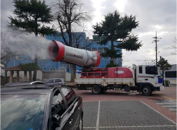 창녕지단은 5t 광역살포기 차량 1대를 투입해 인구 밀집 지역인 창녕읍을 비롯해 대지면, 고암면 일대 도로의 방역을 실시했다.