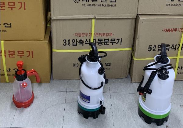 광산구는 방역용 압축분무기 124대를 동 행정복지센터에 지원하고, 여기에 21개 동에서 보유 중인 분무기 365대를 더해 시민에게 대여해주고 있다.
