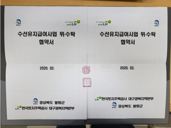 봉화군(군수 엄태항)은 2월 27일(목) 한국토지주택공사 대구경북지역본부(임정학 차장)와 주거급여 수선유지급여 위·수탁을 위한 업무협약을 체결했다.