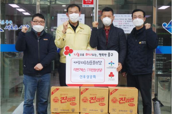 선우상공회(회장 김동현)는 지난 28일 오후 2시 울산 중구 약사동 행정복지센터에서 후원물품을 전달했다.