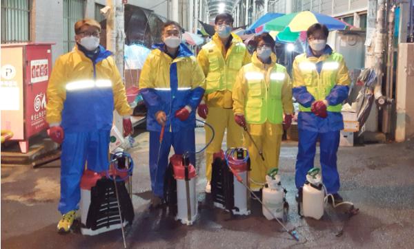 울산 중구 병영1동 행정복지센터는 지난 28일 오후 7시 30분 자원봉사자와 동 직원 등이 참여한 가운데 코로나19 확산 차단을 위한 방역소독작업을 실시했다.