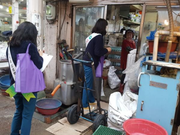 각 식품접객업소와 상인들을 대상으로 손 세정제, 향균 손티슈, 향균 비누, 마스크 등을 3,000여 개를 배포하였고 희석한 락스로 대중의 손이 많이 닿는 손잡이 등을 소독하는 방법을 직접 시연을 통해 보여주고, 그 외에도 흐르는 물에 30초 이상 손 씻고 마스크 착용, 옷소매로 가리고 기침하는 방법 등을 교육하였다.