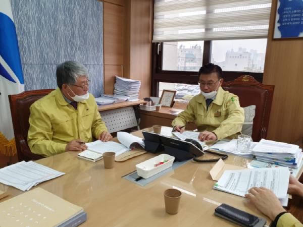 김포교육지원청 정경동 교육장은 코로나19가 빠르게 확산되던 지난 28일(금) 김포시청을 방문하여 정하영 시장과 긴급 면담을 가졌다.