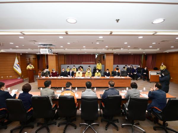 김천시는 3월 2일 시청 회의실에서 코로나19 위기 상황을 총력 공동대응 하기 위해 기관장 회의를 개최하였다.