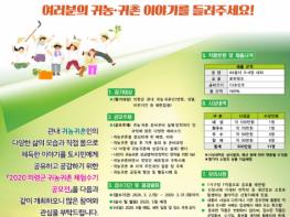 공모신청은 귀농·귀촌 준비부터 실행·정착까지 전 과정에 얽힌 다양한 에피소드를 주제로 A4용지 3~4장 분량으로 작성하여 신청서와 함께 제출하면 된다.