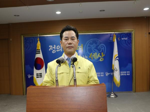 박정현 부여군수가 2일 코로나19 총력대응과 관련하여 대군민 담화문을 발표했다.