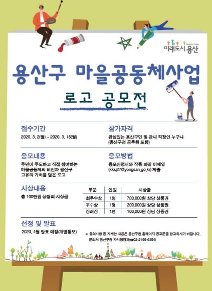 서울 용산구(구청장 성장현)가 오는 16일까지 마을공동체사업 로고(logo)를 공모한다.
