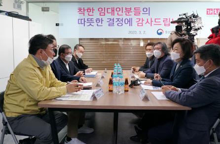 박 장관과 서 구청장은 코로나19로 어려움을 겪고 있는 시장·상가 점포의 임대료를 인하한 패션타운 관광특구 임대인들에게 감사와 격려의 뜻을 전하고, 애로사항을 청취했다.
