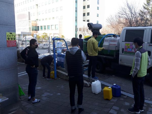 3일 익산시에 따르면 이날부터 시민들이 자발적으로 집 주변을 자체소독 할 수 있도록 대형 소독약품(희석액) 저장탱크를 보건소와 29개 읍면동 행정복지센터에 설치해 주민들이 필요한 만큼 환경소독제를 받아 소독할 수 있도록 조치했다.